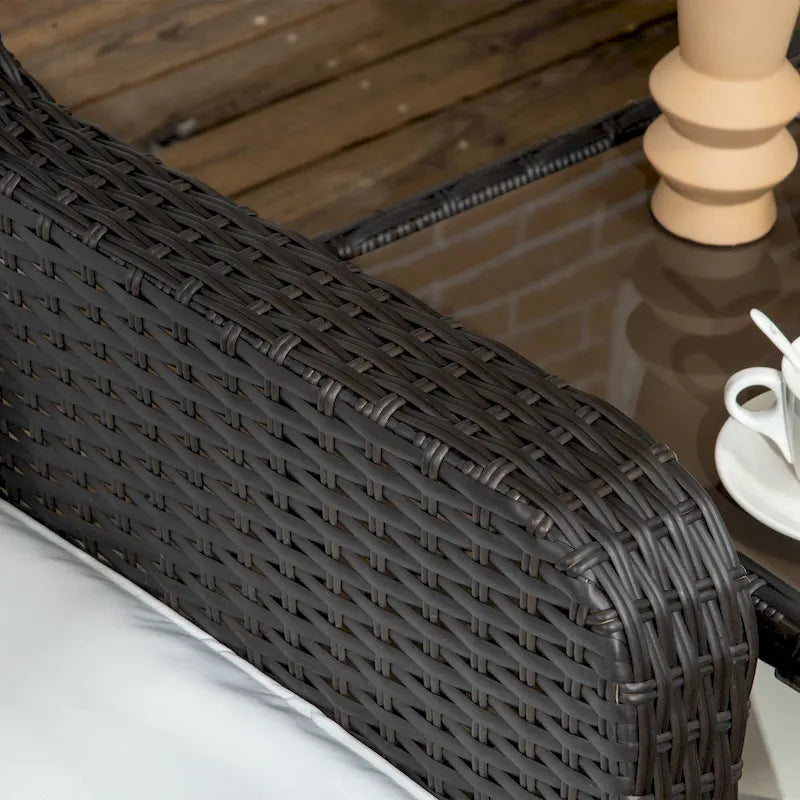 Enjoy the beauty of the outdoors with the Outsunny 3-Piece Patio Bistro Set! This all-weather patio furniture features two armchairs, thick cushions, and a two-tier tempered glass coffee table, all crafted with a heavy-duty steel frame and PE rattan wicker material for long-lasting outdoor use. The chairs swivel and rock to make outdoor dining, conversation, and relaxation even more comfortable. Invite a friend and enjoy the great outdoors with Outsunny!