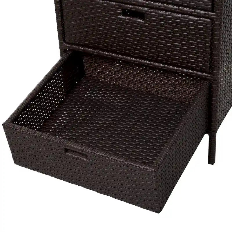Outsunny 32 Poolside Rattan Wicker Patio Organizer Storage Cabinet with 3 Large Drawers & Weather-Fighting Materials