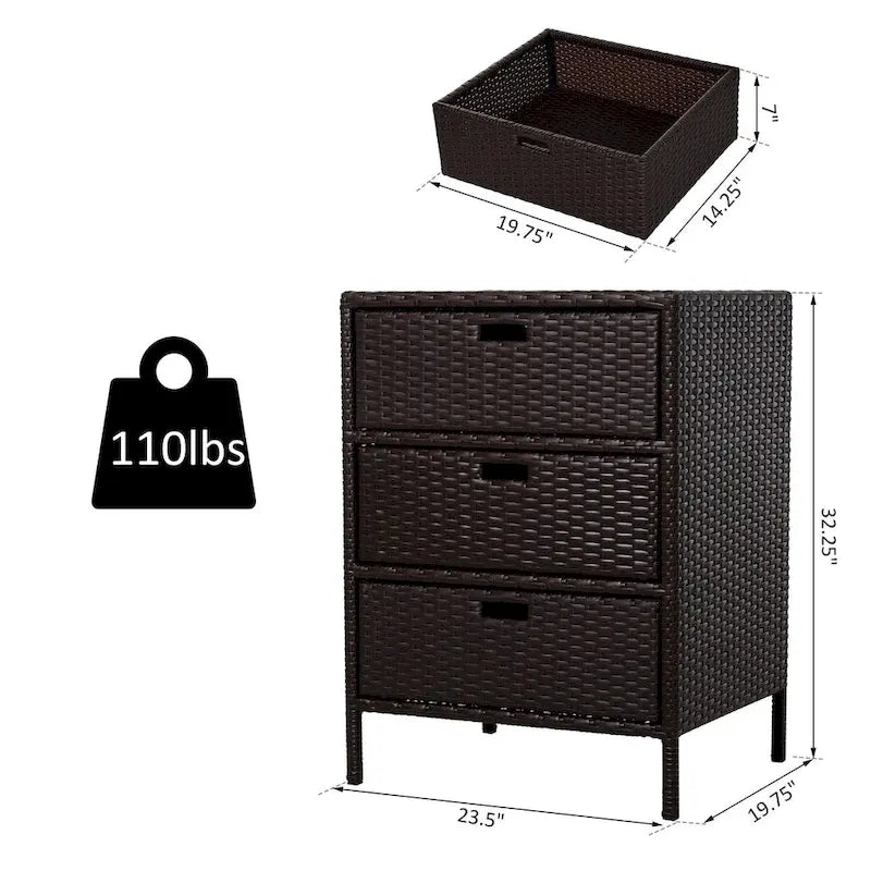 Get the resort-style feel with the Outsunny 32 Poolside Rattan Wicker Patio Organizer Storage Cabinet. This modern storage chest features a durable steel frame and all-weather PE rattan wicker, plus three large drawers to store your towels, pool and spa accessories, and more. With no assembly required, this cabinet is perfect for spas, decks, patios, and more.