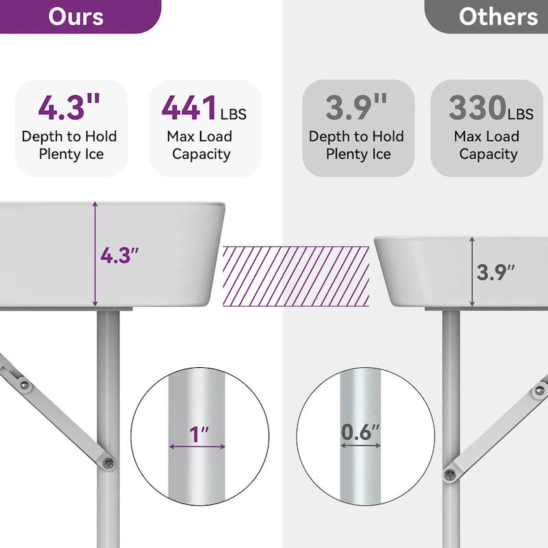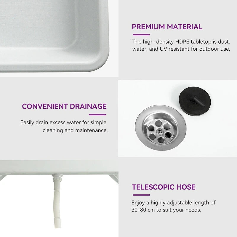 - Experience the epitome of convenience and functionality with our folding table. It brings together easy storage, extended cooling capabilities, versatility for various occasions, hassle-free cleaning, and long-lasting stability, providing you with a remarkable solution for all your indoor and outdoor needs.