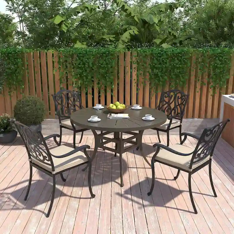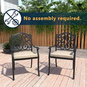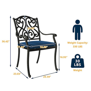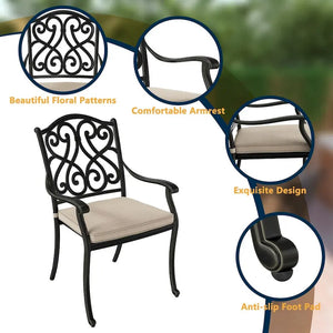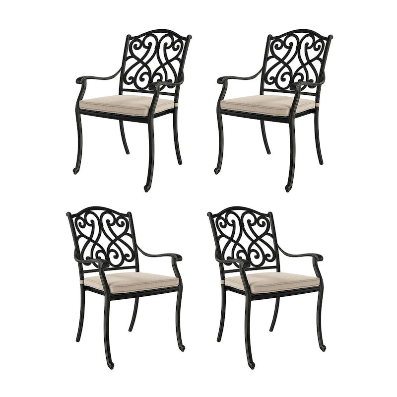Patio Cast Aluminum Carved Dining Chairs with Cushions(Set of 4)