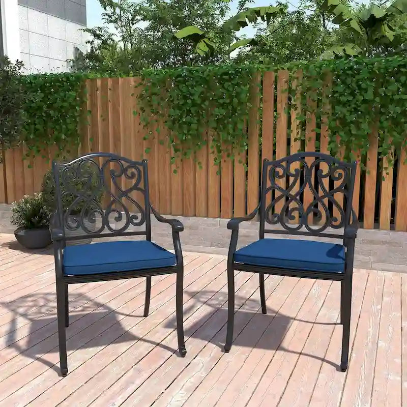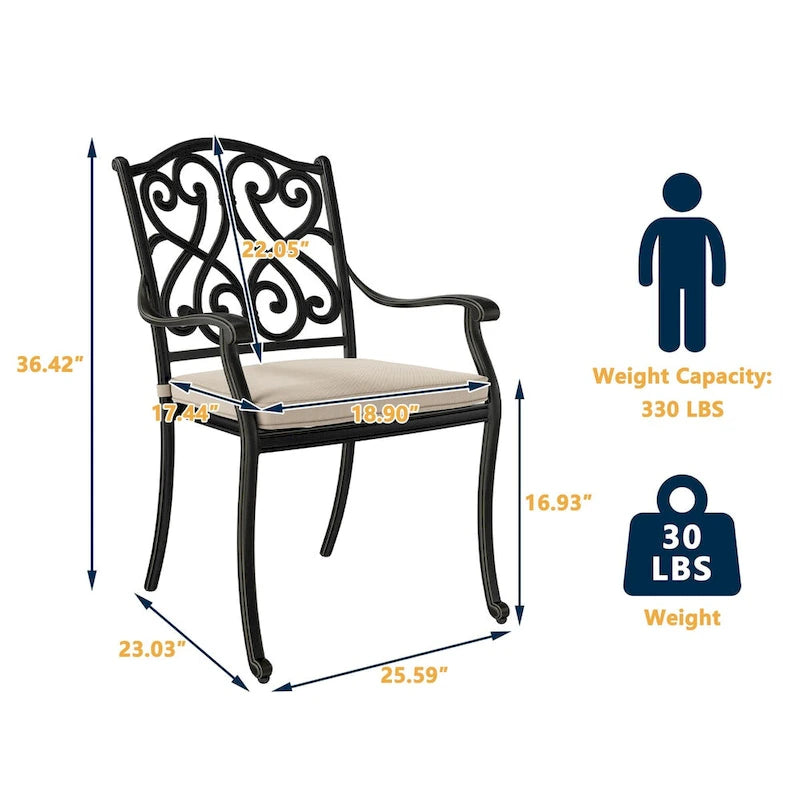 - Superior Weather Resistance: Made of top-notch cast aluminum, these chairs are known for their exceptional weather resistance, ensuring long-lasting durability even in harsh outdoor conditions.
