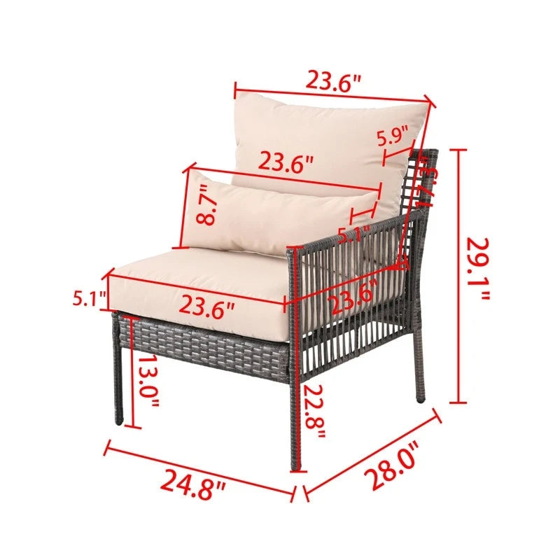 Made from weather-resistant PE wicker and durable powder-coated steel framesWeights & DimensionsOverall: 29 H x 24.8 W x 28.00 DArms: 23 HSeat Height Without Cushion: 13.2Seat Width - Side to Side: 23.6Seat Depth - Front to Back: 23.6Overall Product Weight: 19 lb.