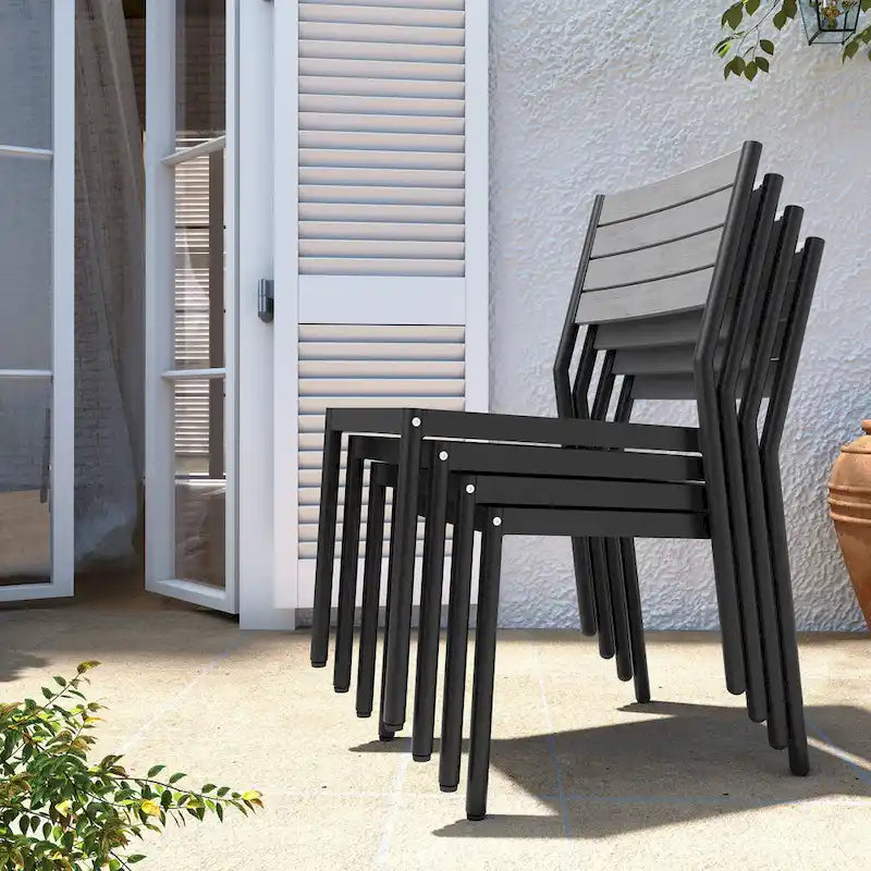- Chair material: aluminum frame and wood-plastic composite