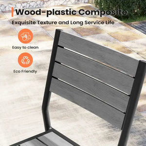 - Material: aluminum frame and wood-plastic composite