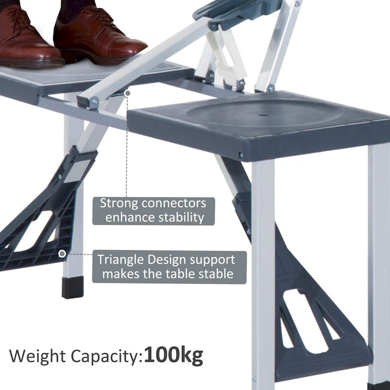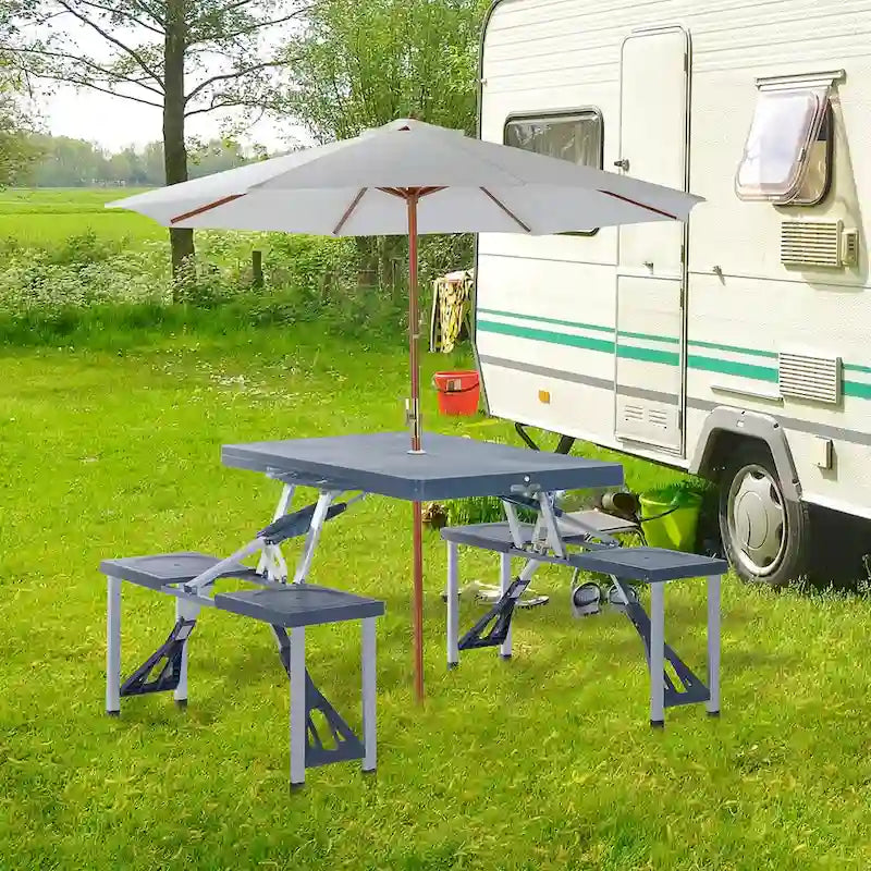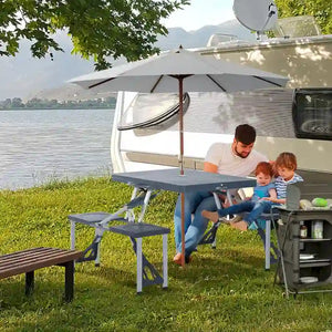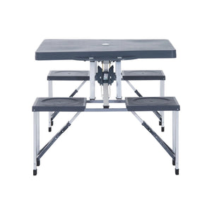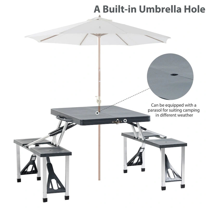 Portable Folding Picnic Table with Seats and Umbrella Hole, Multipurpose Table with Camping Chairs Set, 4-Seat, Aluminum Frame