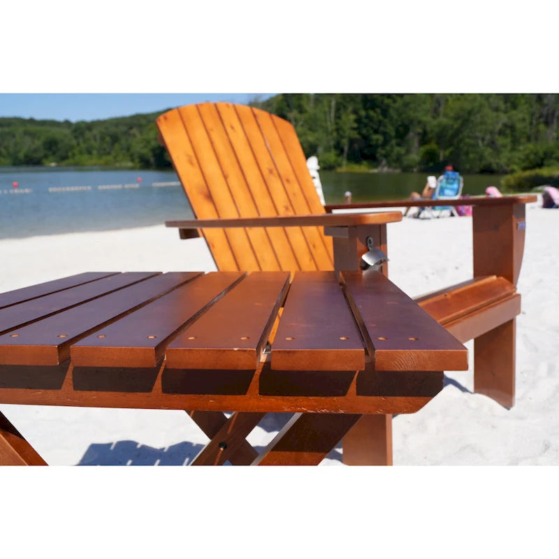Riverstone Solid Cedar Adirondack Extra Wide Chair with build in bottle opener & matching folding table - Redwood
