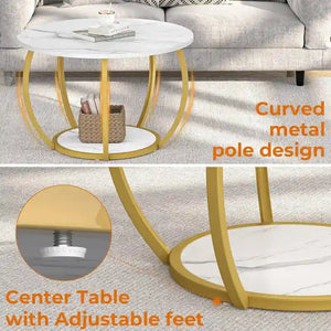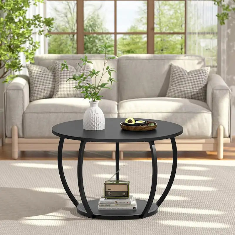 Charming Round Design: Featuring smooth curves and a timeless round shape, this coffee table adds a touch of charm to any living room. Its classic style blends effortlessly with any home decor, making it a perfect addition for both daily use and entertaining guests.