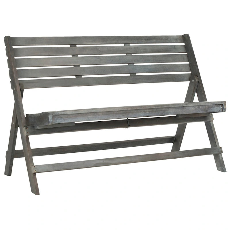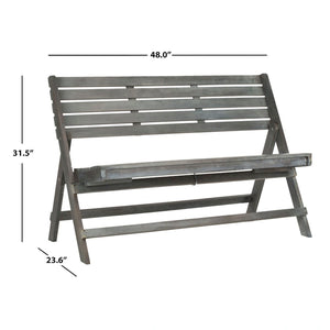 SAFAVIEH Outdoor Sherilyn Ash Grey Folding Bench - 48Wx24Dx32H