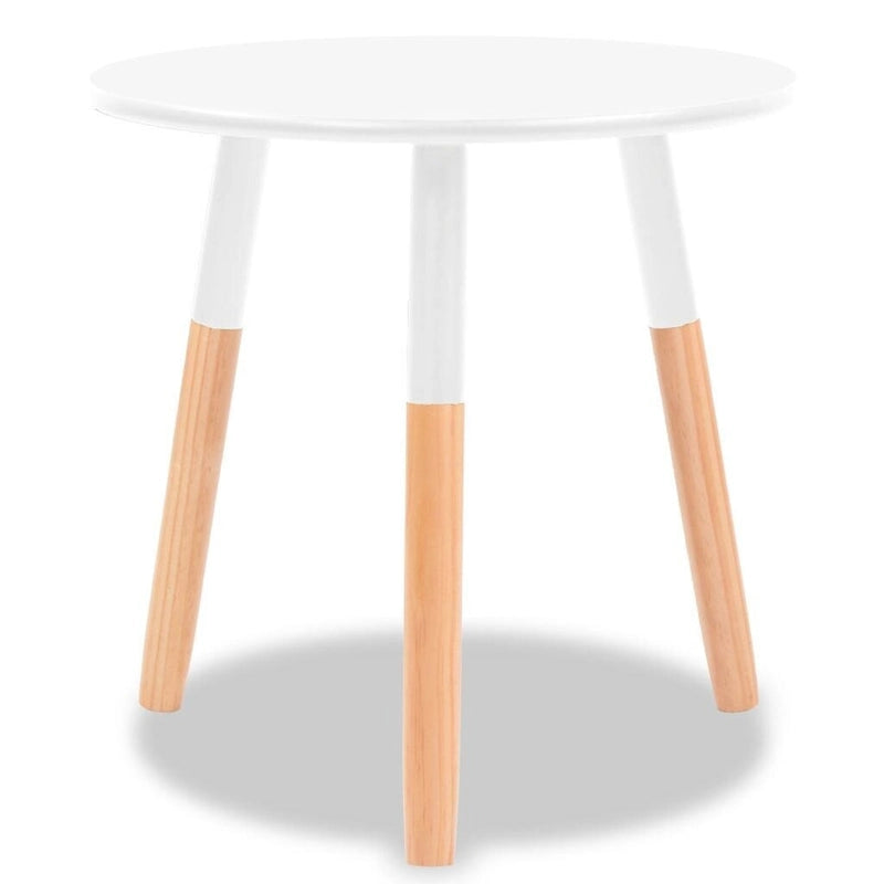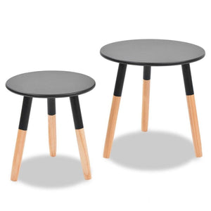 This chic side table set adds a touch of Scandinavian style to any living space. Crafted from solid pinewood and MDF, these tables are strong and sturdy, perfect for placing drinks, fruits, vases and other decorative items. The set includes two tables: one larger and one smaller, both with foot pads for added stability. Easy to assemble, this stylish set will make a great addition to your living room or lounge.
