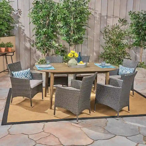 - Includes: One (1) Outdoor Dining Table and Six (6) Outdoor Dining Chairs