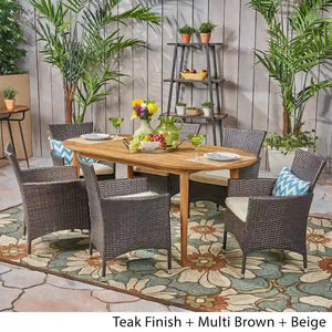 Stamford Outdoor 7-Piece Acacia Wood Dining Set with Wicker Chairs by Christopher Knight Home