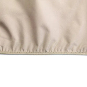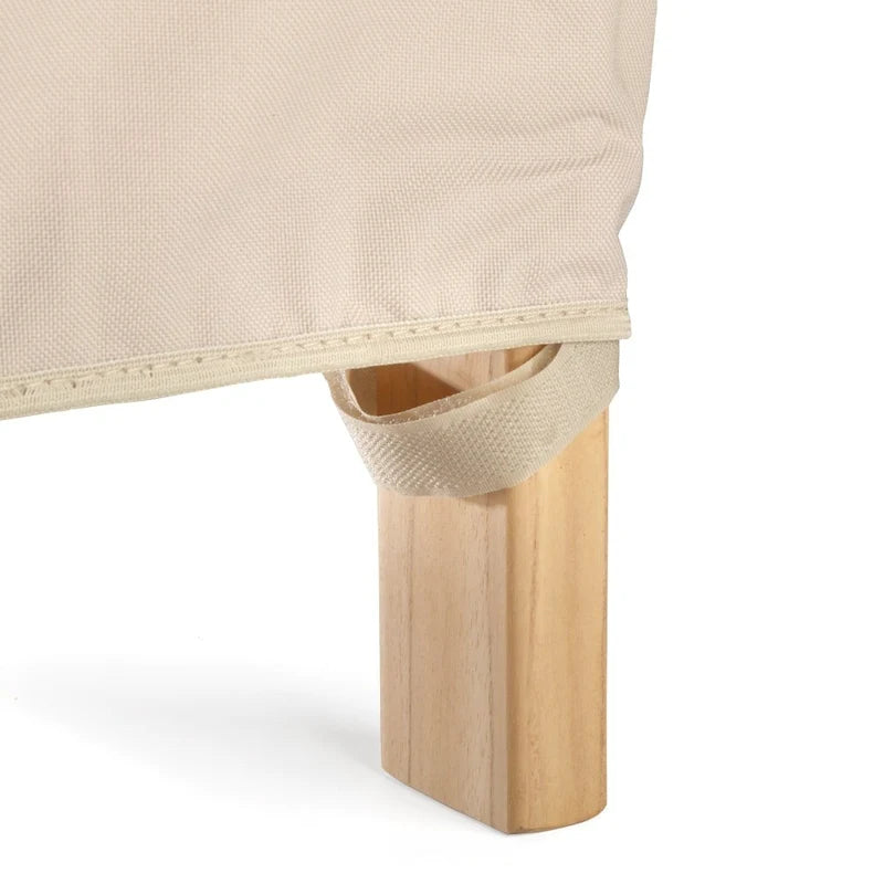 Heavyweight polyester with PVC lining with enhanced UV protection. Weather resistant against the elements and any standing water, and double stitched to prevent water seepage. Adjustable hook and loop fasteners and elasticized bottom help to keep dirt, leaves and other debris off your patio furniture. Fits most square tables up to 64 and chairs; will cover a chat set or sectional. Dimensions: 96 L x 96 W x 36 H